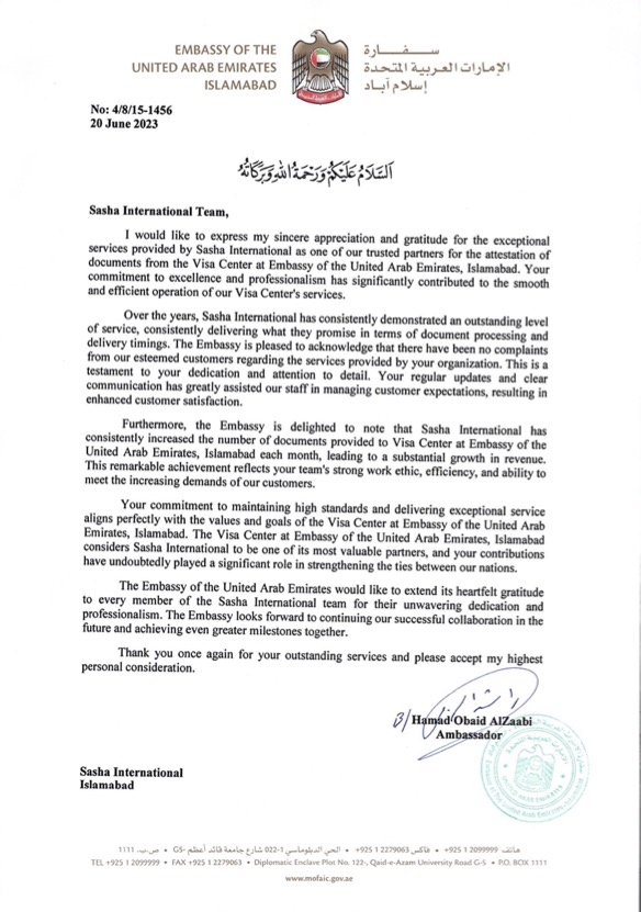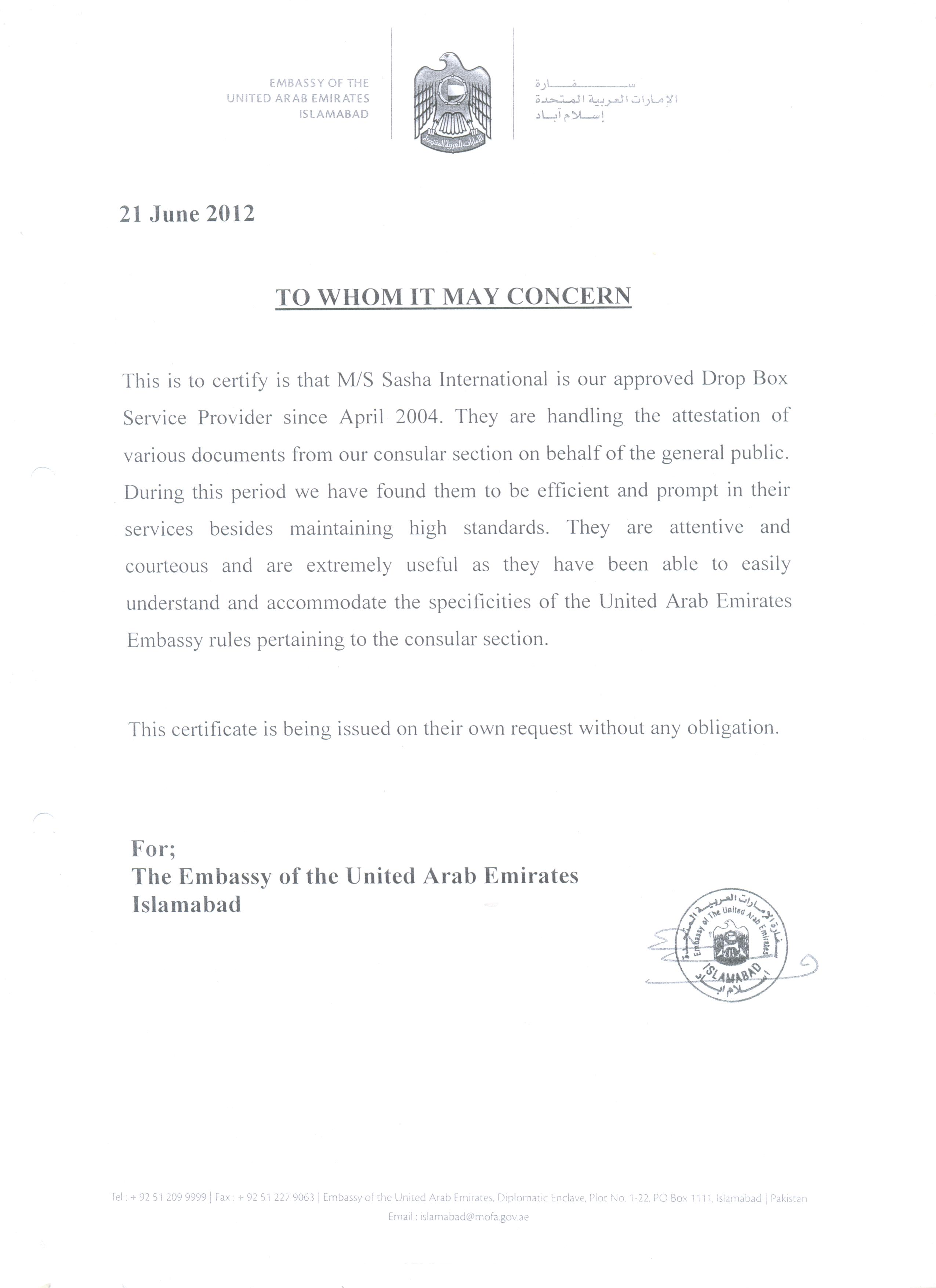 In 2004, the company grew and entered the Drop Box Service Industry. We provide attestation service by virtue of being the service providers to the Ministry of Foreign Affairs – Government of Pakistan and for Embassies of United Arab Emirates, Brazil, Argentina, Thailand, Malaysia etc. in Pakistan.
